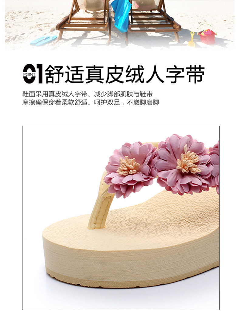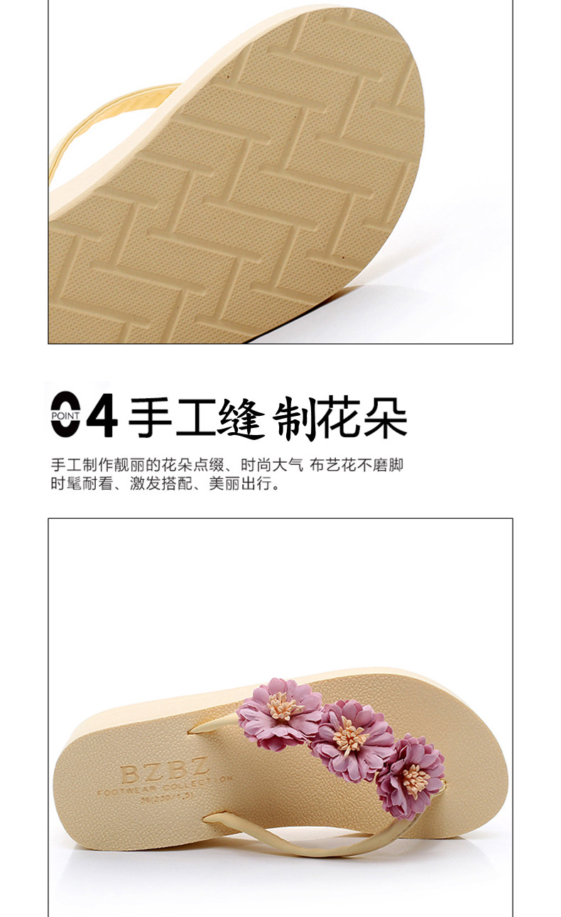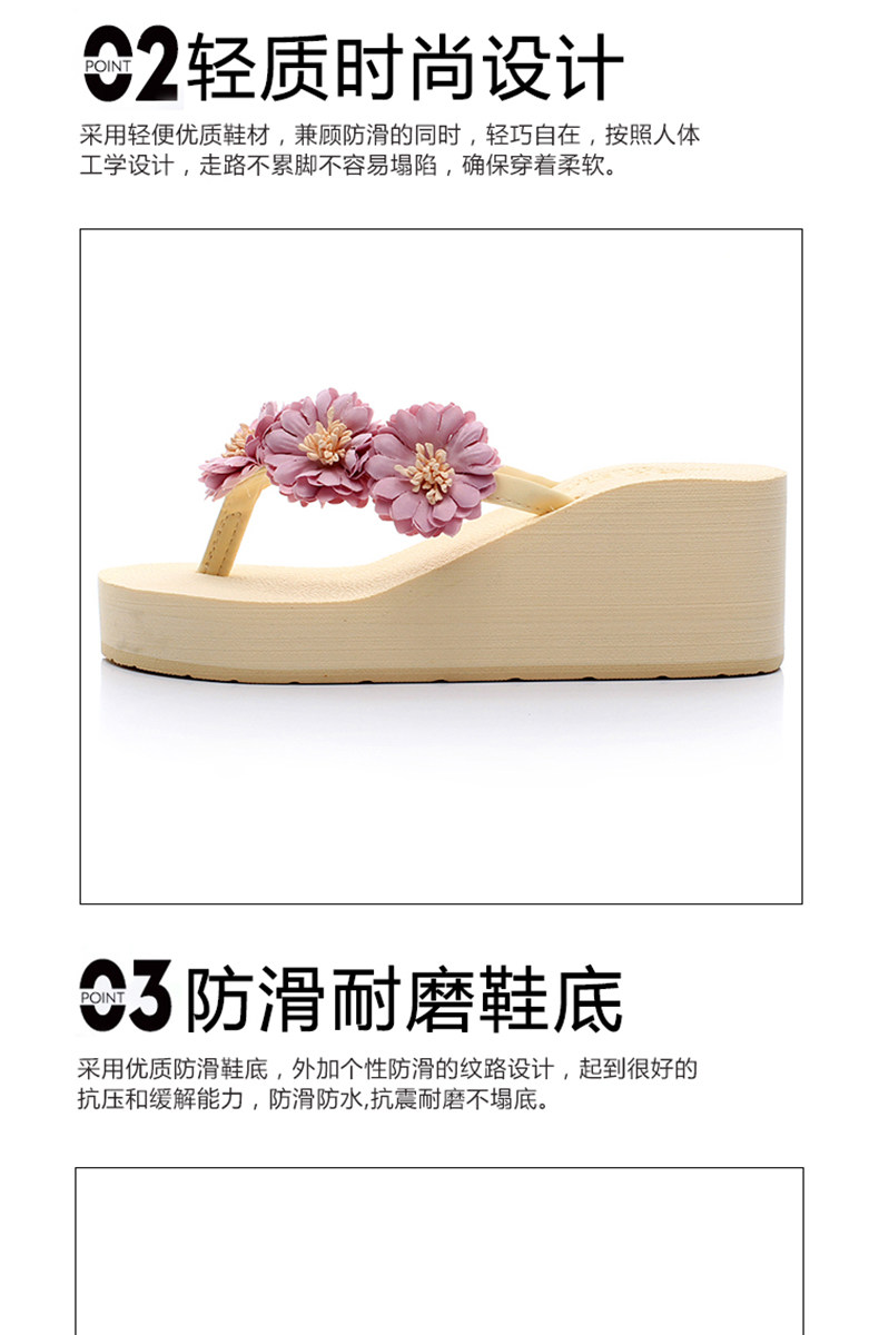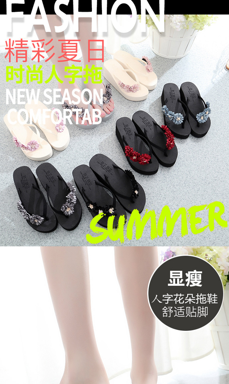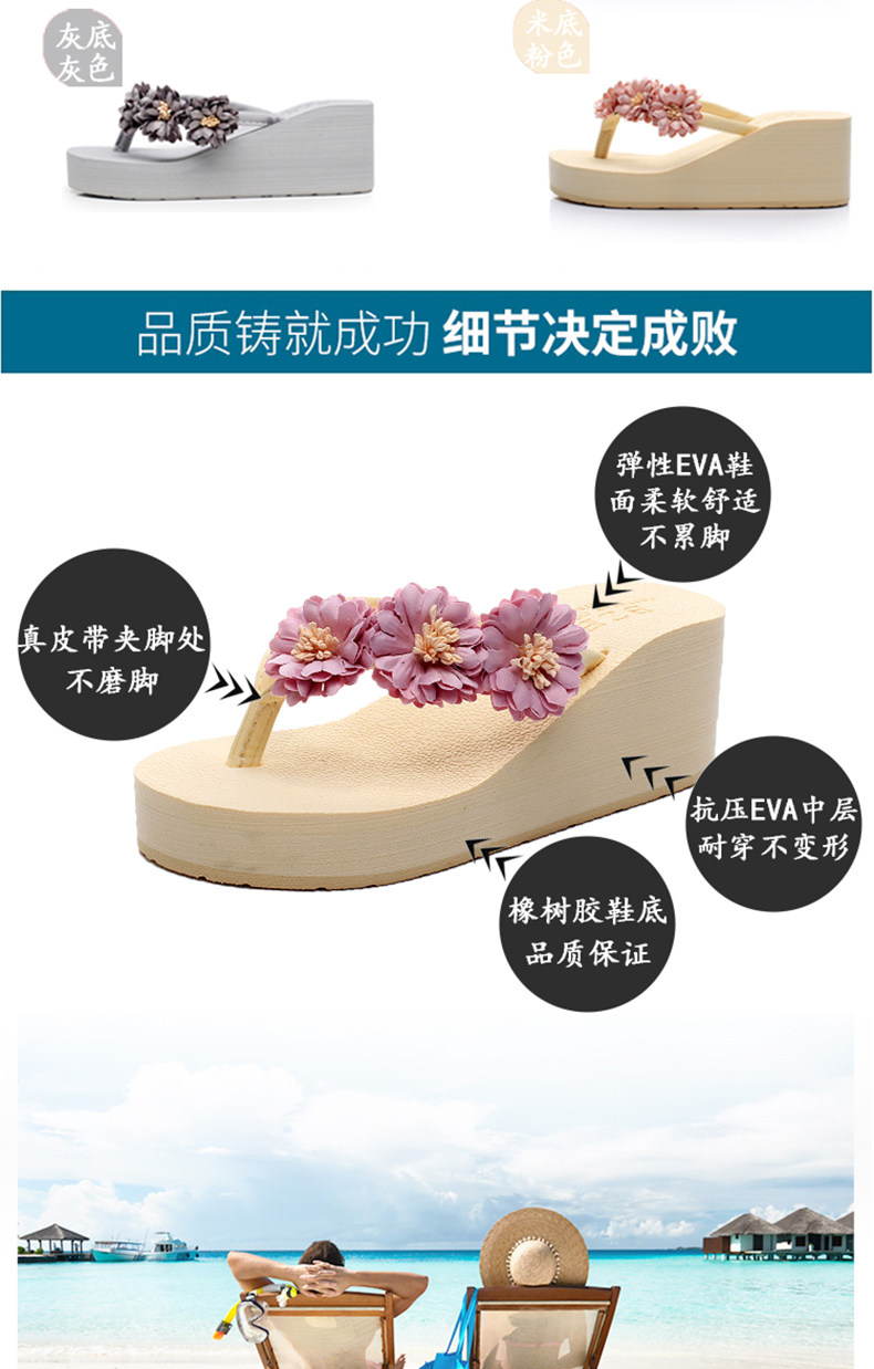 舒适厚底民族风沙滩鞋防滑夹脚坡跟人字拖女夏时尚韩版高跟凉拖鞋