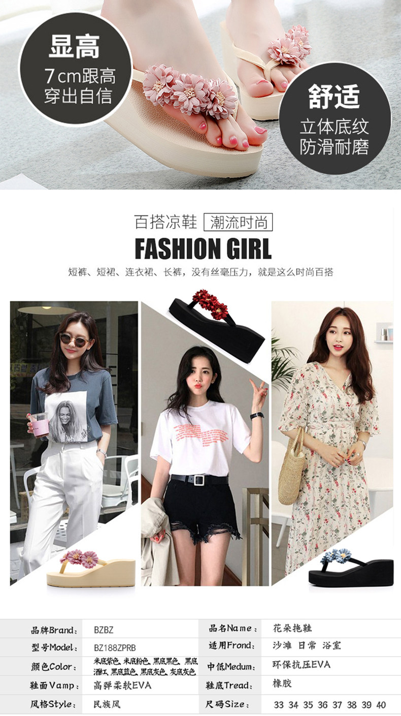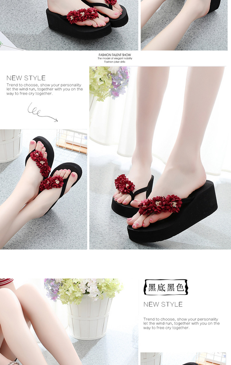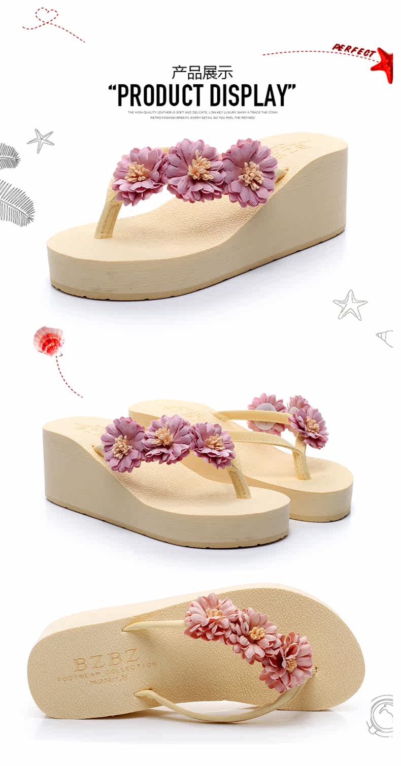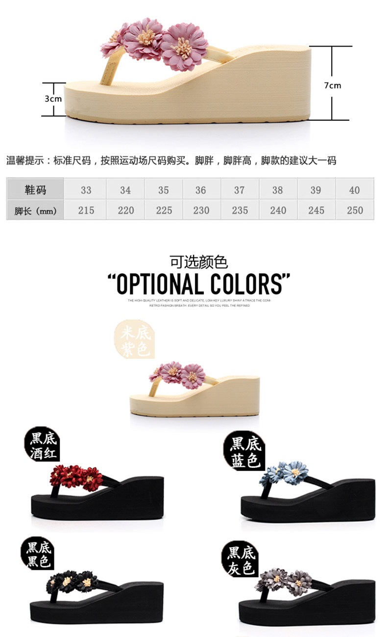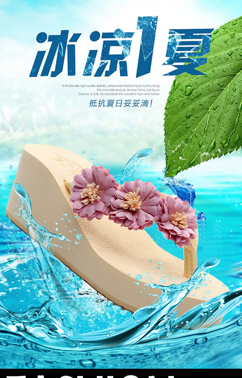 舒适厚底民族风沙滩鞋防滑夹脚坡跟人字拖女夏时尚韩版高跟凉拖鞋