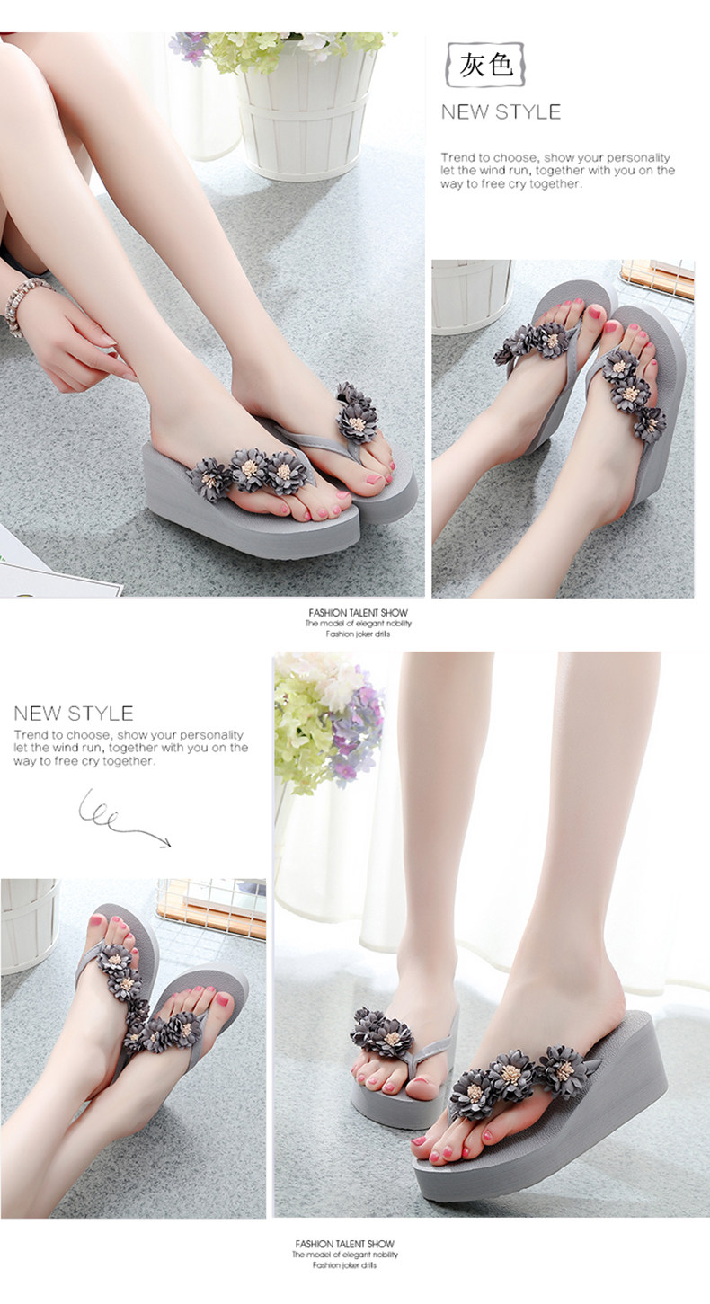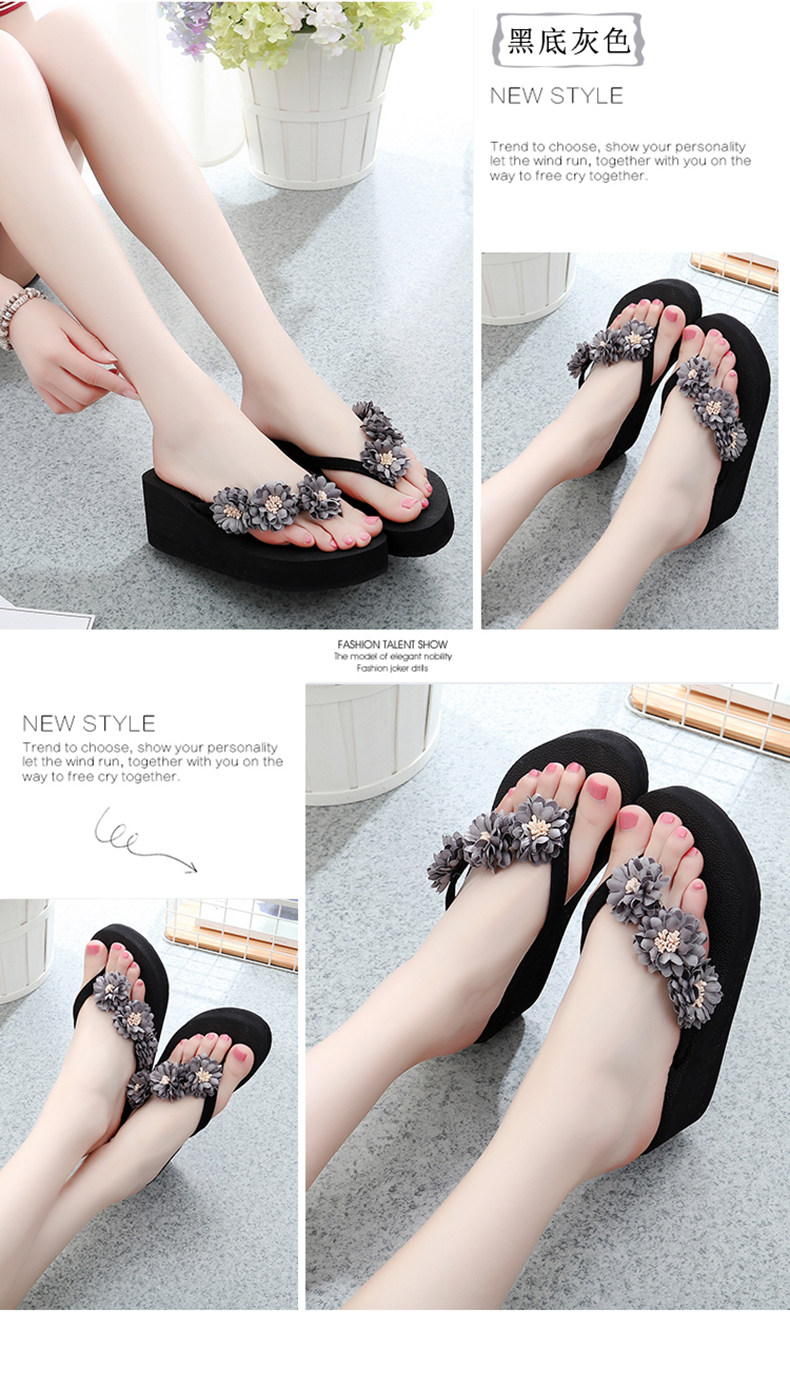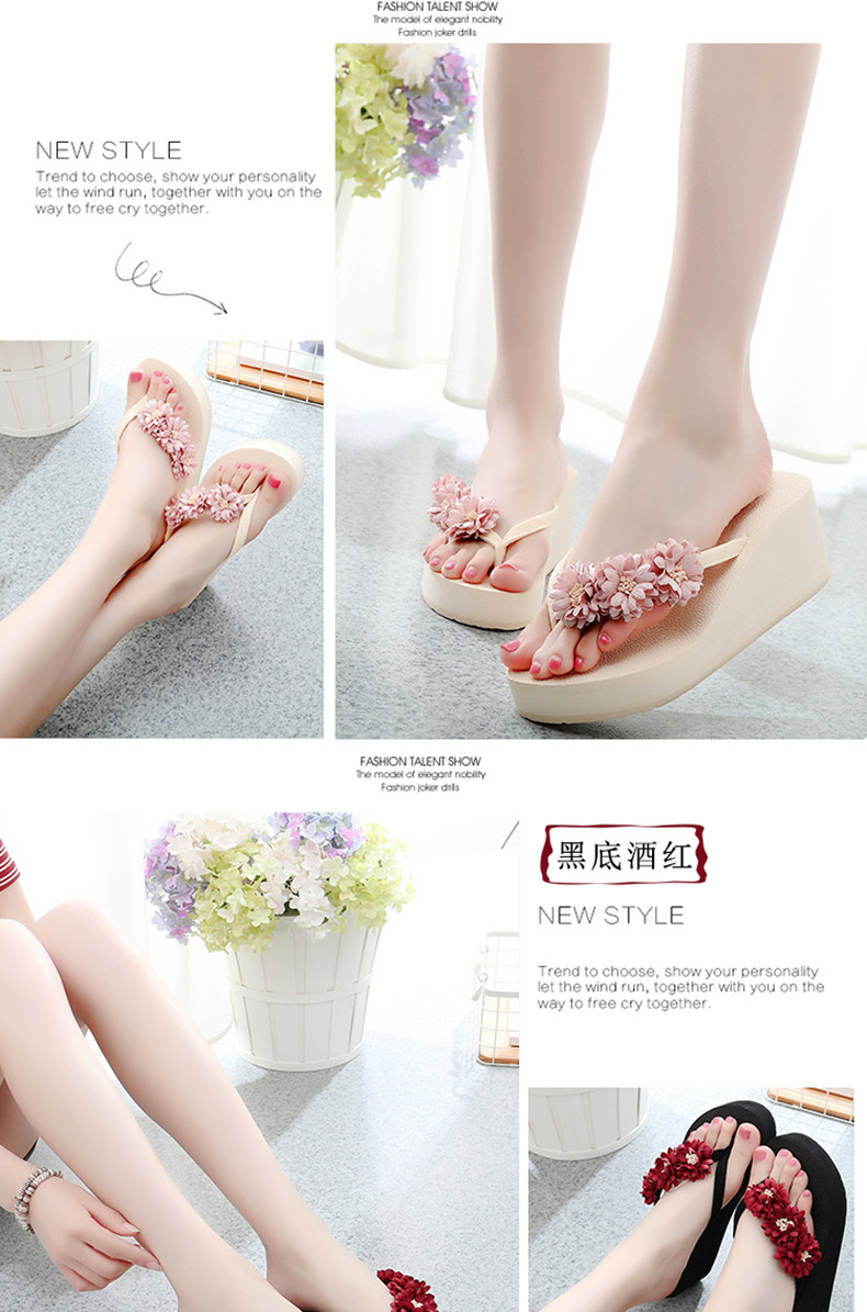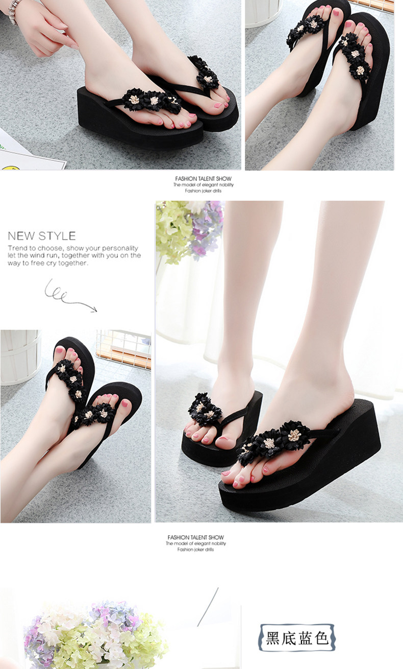 舒适厚底民族风沙滩鞋防滑夹脚坡跟人字拖女夏时尚韩版高跟凉拖鞋