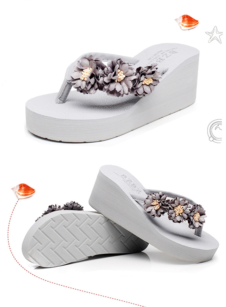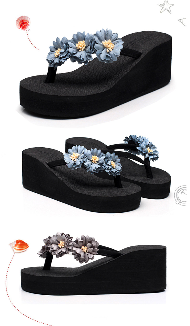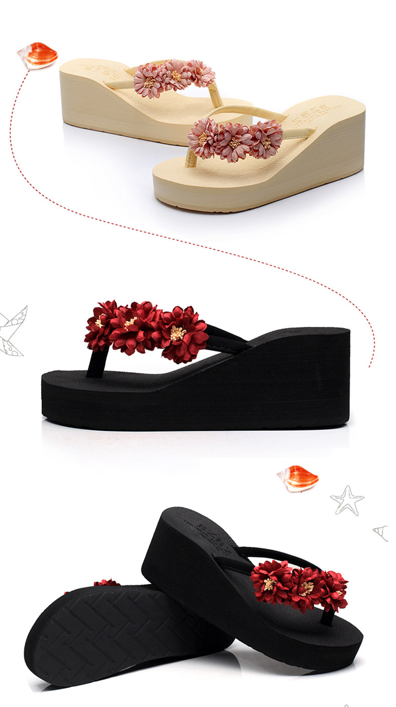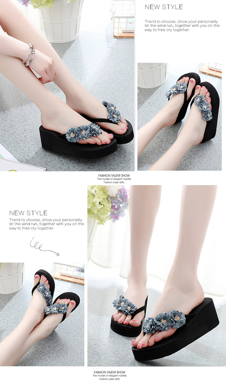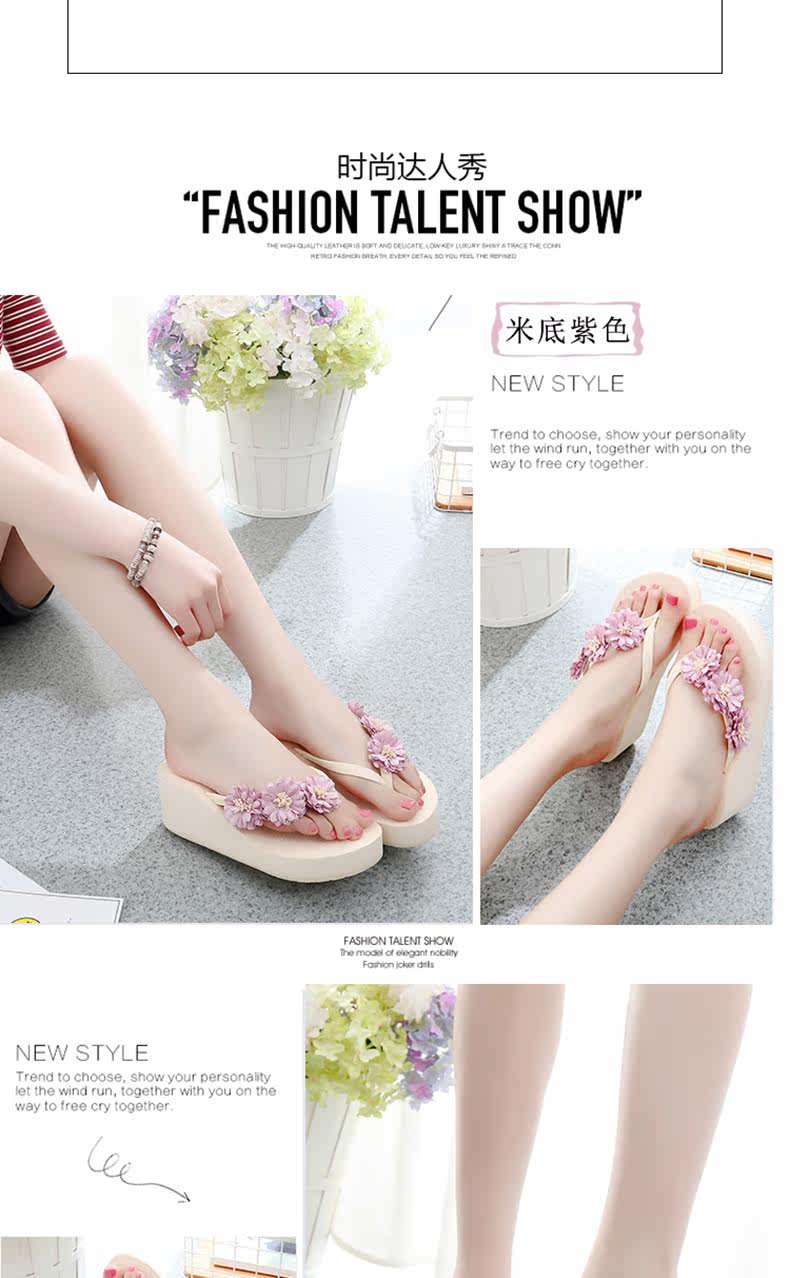 舒适厚底民族风沙滩鞋防滑夹脚坡跟人字拖女夏时尚韩版高跟凉拖鞋