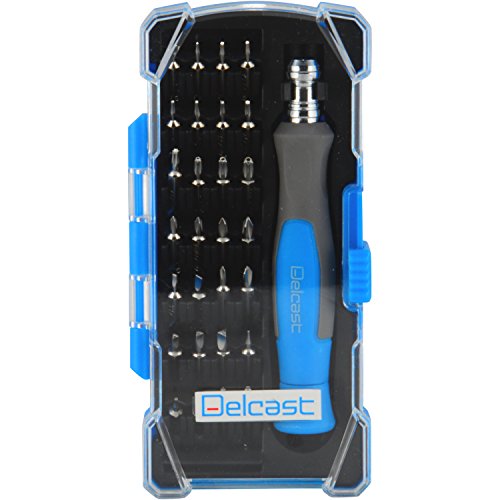 The Delcast LP-29 Precision Screwdriver Set includes a 28 piece assortment of phillips, slotted, torx, security torx, pentalobe, triwing, triangle and hexagon bits. The bits are constructed of chrome vanadium steel and are magnetized. The bit driver has a retention spring to hold the bits securely in place. This set is designed to work for a vast array of electronics repair applications; from the iPhone to the Roomba, MP3 player to game console, and everything in between.| Phillips 000, 00, 0, 1 | Pentalobe 0.8, 1.2 (2 each) |