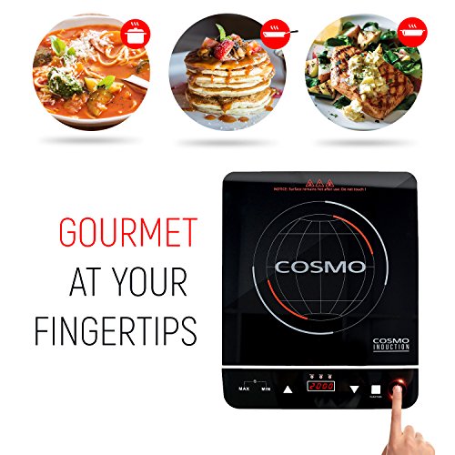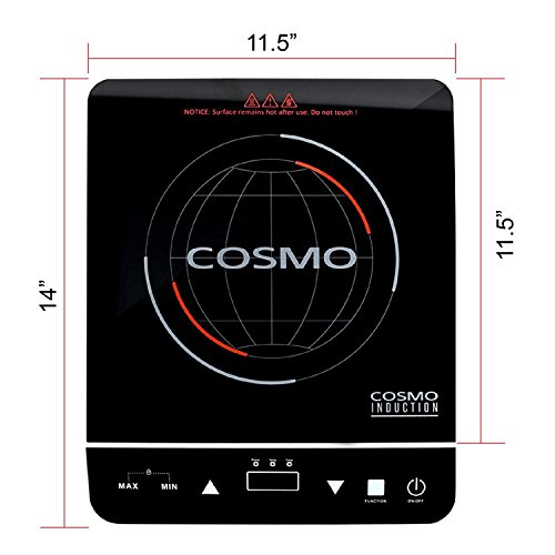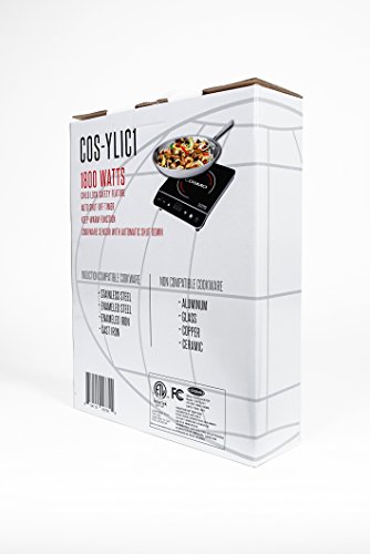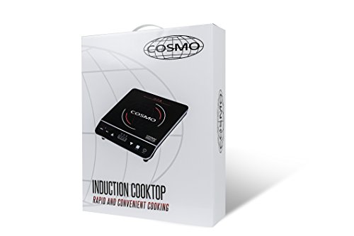 Cosmo’s induction cooktop offers the best portable burner for your kitchen or cooking on the go. Rapid and uniform heating transfers directly to the pan for better cooking results than traditional gas burners. Smooth glass surface wipes clean for easy clean-up. Space saving size stores neatly in drawers and is perfect for dorms, boats, patios and rvs. A child-safety lock and pan detection with auto-shut off keeps safety a priority. Super long 5 foot power cord for added flexibility. Cookware must be induction-ready. Will not work on aluminum, glass, copper, or ceramic. Automatic cookware detection display will read e0 induction burner ignores accidental presses. Please press and hold for at least 1 sec for each button to register.Feature