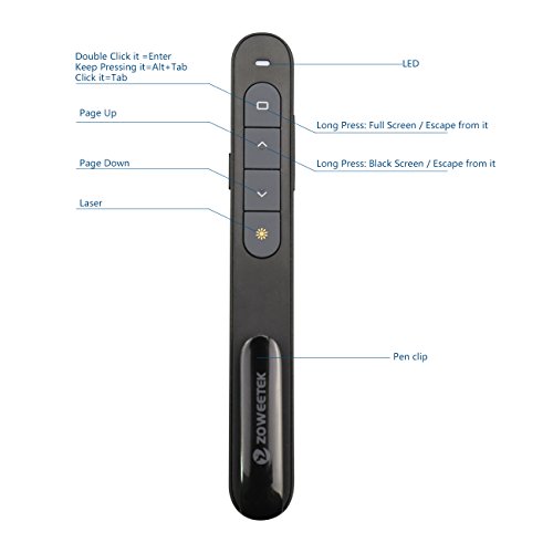 Zoweetek® Professional Presenter 2.4Ghz Wireless Presenter PowerPoint Clicker Presentation Remote Control PPT Presenter Pen Built-in Lithium Battery B01DXS582K