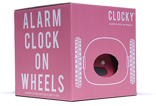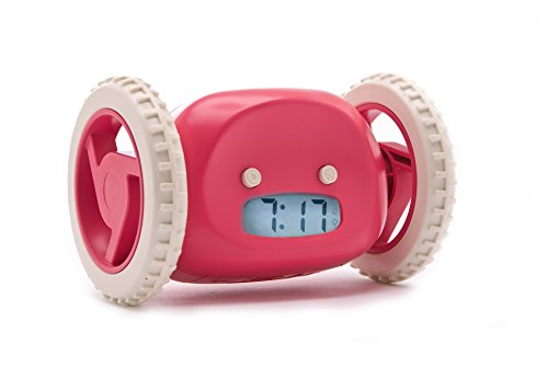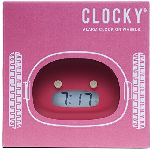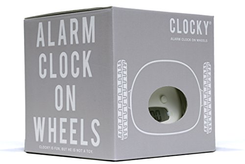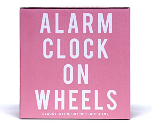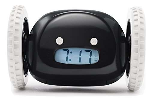 Never over-sleep again! Clocky is the alarm clock on wheels that runs away beeping! You can snooze one time, but if you don't get up, Clocky will jump off of your nightstand up to 3 feet high, and run around your room as if looking for a place to hide. You'll have to get out of bed to silence Clocky's alarm. Clocky beeps in an R2D2-like robotic pattern so that you are sure to hear him. He's kind of like a pet, only he will get you up at the right time! You can set Clocky to run away right when the alarm sounds, or set to snooze one time before he runs away. Clocky features a customizable snooze time up to 9 minutes long. You can also turn off Clockies wheels if you don't want Clocky to run away one morning. A backlight helps you see Clocky at night. Clocky is perfect for those of us who have trouble waking up in the morning! He is compact, clever, and playful. He will never cease to amuse you as you wake up in the morning. This is an authentic Clocky alarm clock by the original designers of the product, Nanda Home Inc.