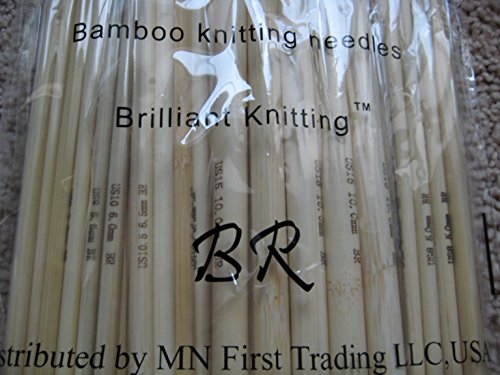 BrilliantKnitting (BR brand, Registered) 15 Sets of 8 inch Double Pointed (DP) Bamboo Knitting Needles (5 needles per set, 75 needles in total)