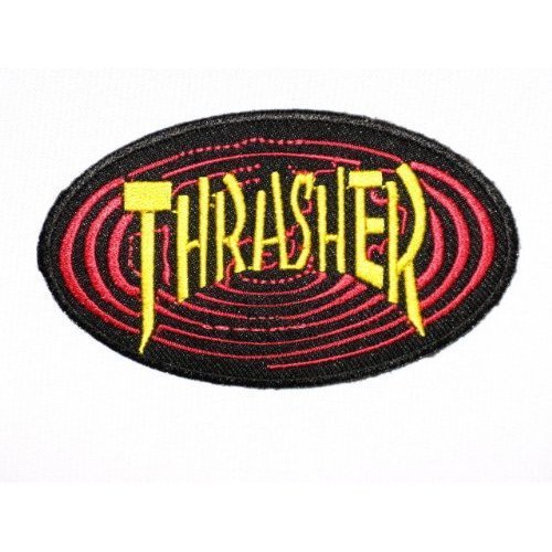 -. Title : THRASHER Skate patches Embroidered iron/sew on Patch to Cloth, Jacket, Jean, Cap, T-shirt and Etc. /Size 10.2x6 cm