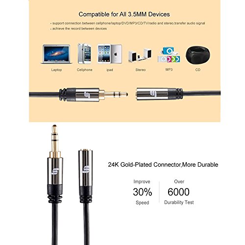 Sinseader 25ft Gold Plated 3.5mm Stereo Audio Male to Female Extension Cable (KST02MF-25FT)