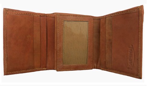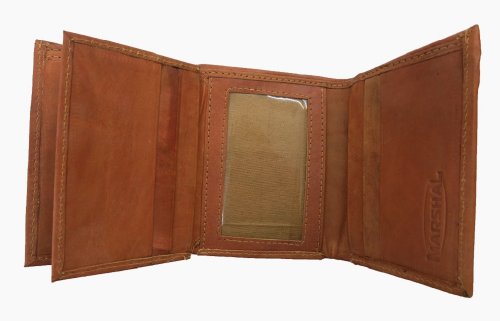 - Title : 100% Genuine Leather Tri-fold Mens Wallet Tan #1307CF