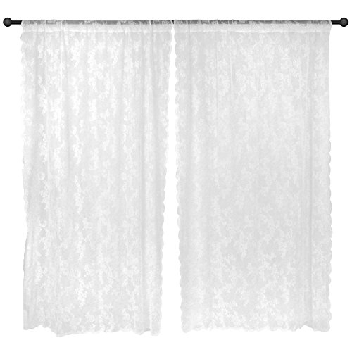 DII’s lace windows curtains will add the finishing touch to any home. Vintage shabby chic is growing in popularity and will refresh the look to any room in your home. These beautifully crafted window curtains add a soft sophisticated look. Filter the sun’s natural light with DII’s lace window treatments adding a bit of charm and privacy to your home. These lace window curtains are convenient to put up, DII’s elegant curtains have a slide rod through opening to easily side rods right in. These lace window curtains are all wrinkle resistant to keep your home looking beautifully neat and tidy. These wonderful lace curtains are durable, maintaining their shape and keep looking new longer. To view more of our products visit amazon.com/homeessentials.Feature