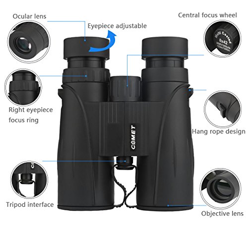 8x42 Binoculars for Bird Watching, COMET Wide Angle High Magnification Super High-Powered Compact Portable Waterproof Fogproof Durable HD Zoom Professional Optical Telescope Binoculars Black