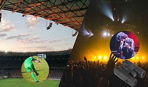Comfortable viewing experience: Roof prism binocular with 8x magnification and 42mm objective diameter.The exceptionally power makes it easy to view the HD details.Great for focus on fast-moving subjects ,seeing everything in HD.