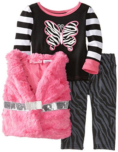 -. Title : Young Hearts Baby Girls' Three-Piece Butterfly Zebra Print Vest And Pant Set