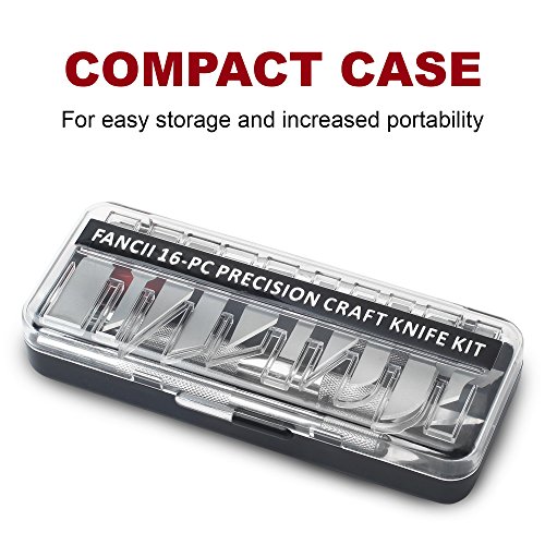 Fancii Precision Craft Knife Set 16 Pieces - Professional Razor Sharp Knives for Art, Hobby, Scrapbooking and Sculpture – Includes Stencil, Fine Point, Scoring, Chiseling Blades