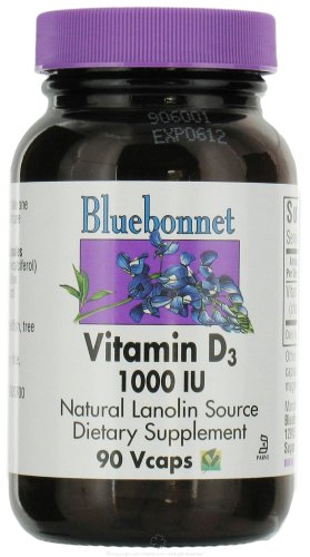 Bluebonnet's Vitamin D3 1000 IU Vcaps provide 100% natural vitamin D3 (cholecalciferol) from lanolin in easy-to-swallow vegetable capsules for maximum assimilation and absorption.