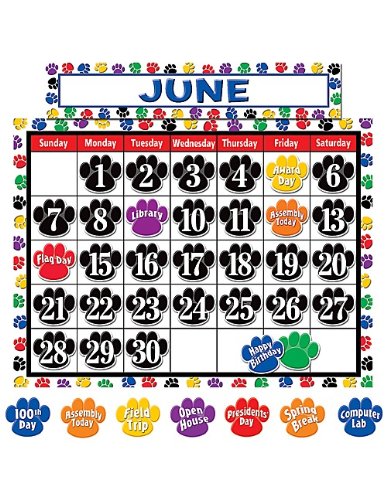 Teacher Created Resources Calendar Bulletin Board Display, Colorful Paw Prints (4328)