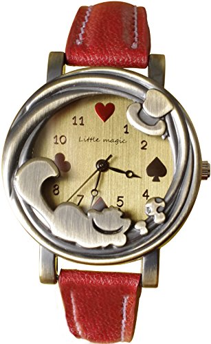 【리틀 매직】 최샤 묘손목시계 레이디스 가죽 앤틱 앨리스 고양이 팔 시계 이상한 나라의 앨리스