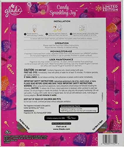 Glade Plugins Scented Oil Limited Edition Candy Sprinkling Joy 2 Warmers 6 Refills