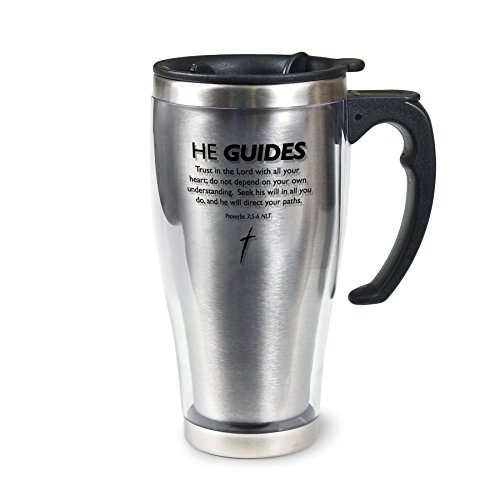 Lighthouse Christian Products He Guides Acrylic/Stainless steel Travel Mug, 16 oz, Silver