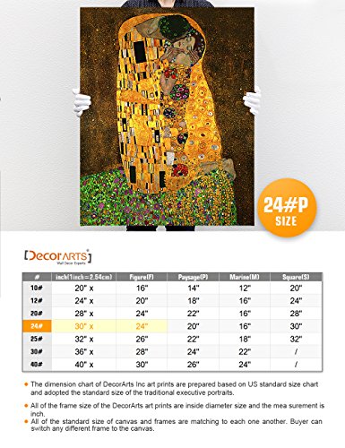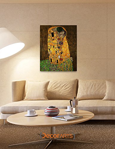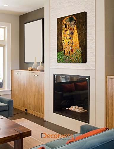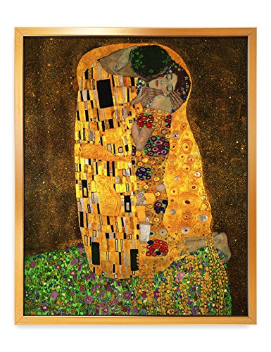The kiss (kovers) was painted by the Austrian symbolist painter gustav Klimt between 1908 and 1909. The highpoint of his "Golden Period", when he painted a number of works in a similar gilded style. A perfect square to depicts a couple embracing their bodies entwined in elaborate robes decorated in a style, influenced by both linear constructs of the contemporary art nouveau style, as well as the organic forms of the earlier arts and crafts movement. The work is composed of oil paint with applied layers of gold leaf. An aspect that gives it its strikingly modern, yet evocative appearance. The painting is now in the sterreichische galerie belvedere museum in the belvedere palace, Vienna and is widely considered a masterpiece of the early modern period. It is a symbol of Vienna jugendstil Viennese art nouveau and considered Klimt's most popular work. Giclee printing is a process uses fade-resistant, archival inks and archival substrates to print by large professional or industrial printers. Giclee printing is often used by artists to make reproductions of their original artwork, photographs, or computer generated art to preserve the original.Feature