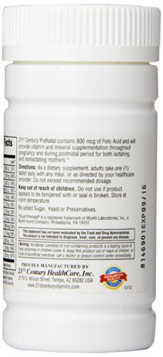 PreNatal - 60 Tablets Compare to Stuart Prenatal. Features: Compare to Stuart Prenatal. 21st Century's PreNatal contains 800 mcg of Folic Acid (200% daily value) and will provide vitamin and mineral supplementation throughout pregnancy and during the postnatal period for both the lactating and nonlactating mothers. Instructions: Store at room temperature. Keep out of reach of children. Do not use if product appears to be tampered with or seal is broken.Feature