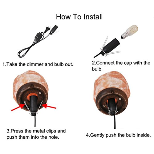 HOMY Salt Lamp Cord with Dimmer Switch Including Two 25W Light Bulbs UL Certified 69 Inches, Bulb Butterfly Clip Fits Many Lamps