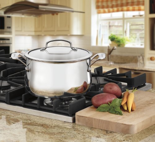Contour Stainless is premium cookware that features professional construction - an aluminum disc in the base is bonded to a stainless interior and a stainless exterior - a fusion of the best materials for cooking, offering unsurpassed performance. The aluminum encapsulated base maintains even heat distribution, eliminating hot spots. Premium stainless steel cooking surfaces do not react with food or alter natural flavors. Elegant styling and a robust silhouette make for a professional look - cook with added flair with this unique cookware.