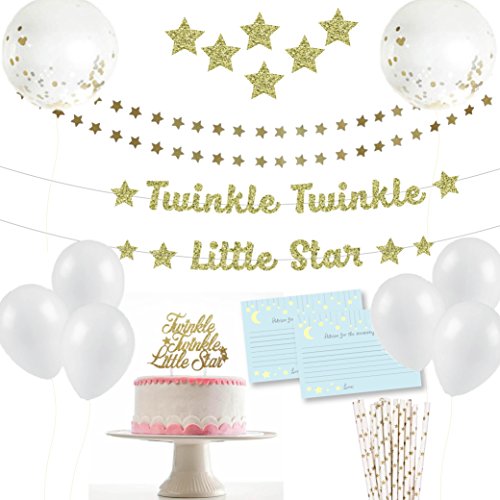Twinkle Twinkle Little Star Party Package (With Advice Cards) - DIY Banner Cake Topper Confetti 36" Balloons 12" Balloons Star Straws Star Confetti and Garland