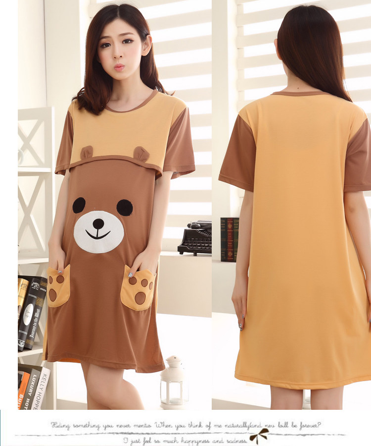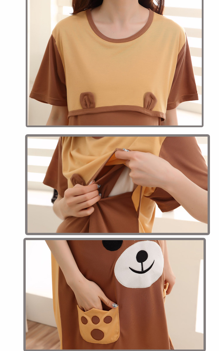 饼干熊裙(上片掀起可哺乳)模特展示(纯棉面料)