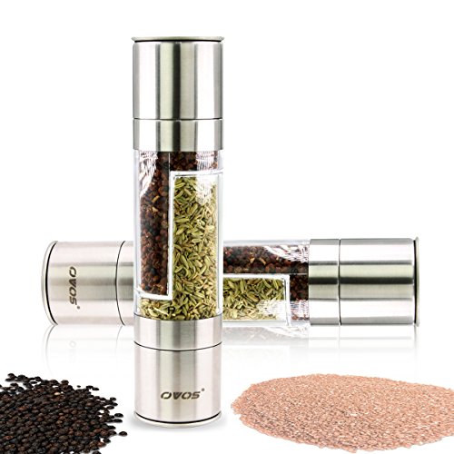 OVOS Salt and Pepper Grinder Set 2 in 1 - Salt Pepper Mill Set with Adjustable Ceramic Grinding Mechanism Stainless Steel