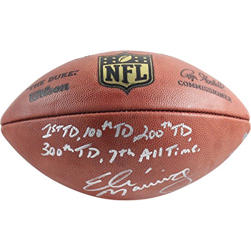 Eli Manning Signed NFL Duke Football w/ 1st TD 100th TD 200th TD 300th TD #7 All Time Insc. (LE of 10)