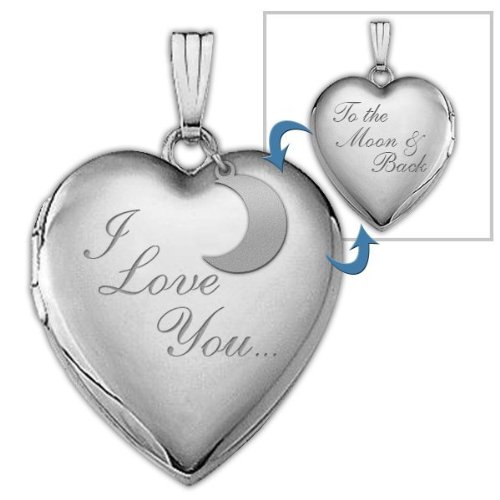 -. Binding : Jewelry -. Brand : PicturesOnGold.com -. Department : womens -. Feature : Locket Size: 3/4 inch x 3/4 inch / Locket Shape: Heart / This locket has a tarnish resistance added to it that will keep it from tarnishing / Free Jewelry Gift Box / Chain Not Included -. Label : PicturesOnGold.com -. Manufacturer : PicturesOnGold.com -. Model : PG85761 -. MPN : PG85761 -. PartNumber : PG85761 -. ProductGroup : Jewelry -. ProductTypeName : FASHIONNECKLACEBRACELETANKLET -. Publisher : PicturesOnGold.com -. Studio : PicturesOnGold.com -. Title : Sterling Silver 'to the Moon and Back' Heart Locket 3/4 Inch X 3/4 Inch