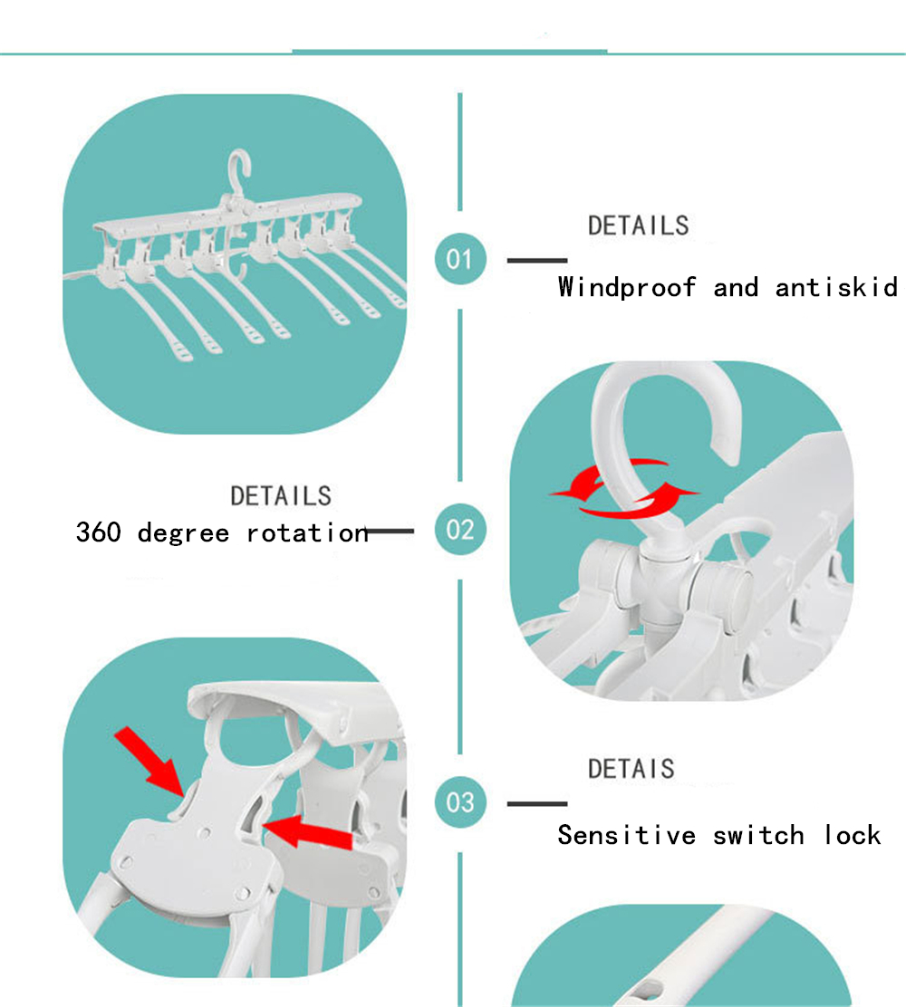 Item Title - Scalable Rotatable Clothes Hanger Telescopic Folding Plastic Hanger Anti Skid Multi-functional Closet Space