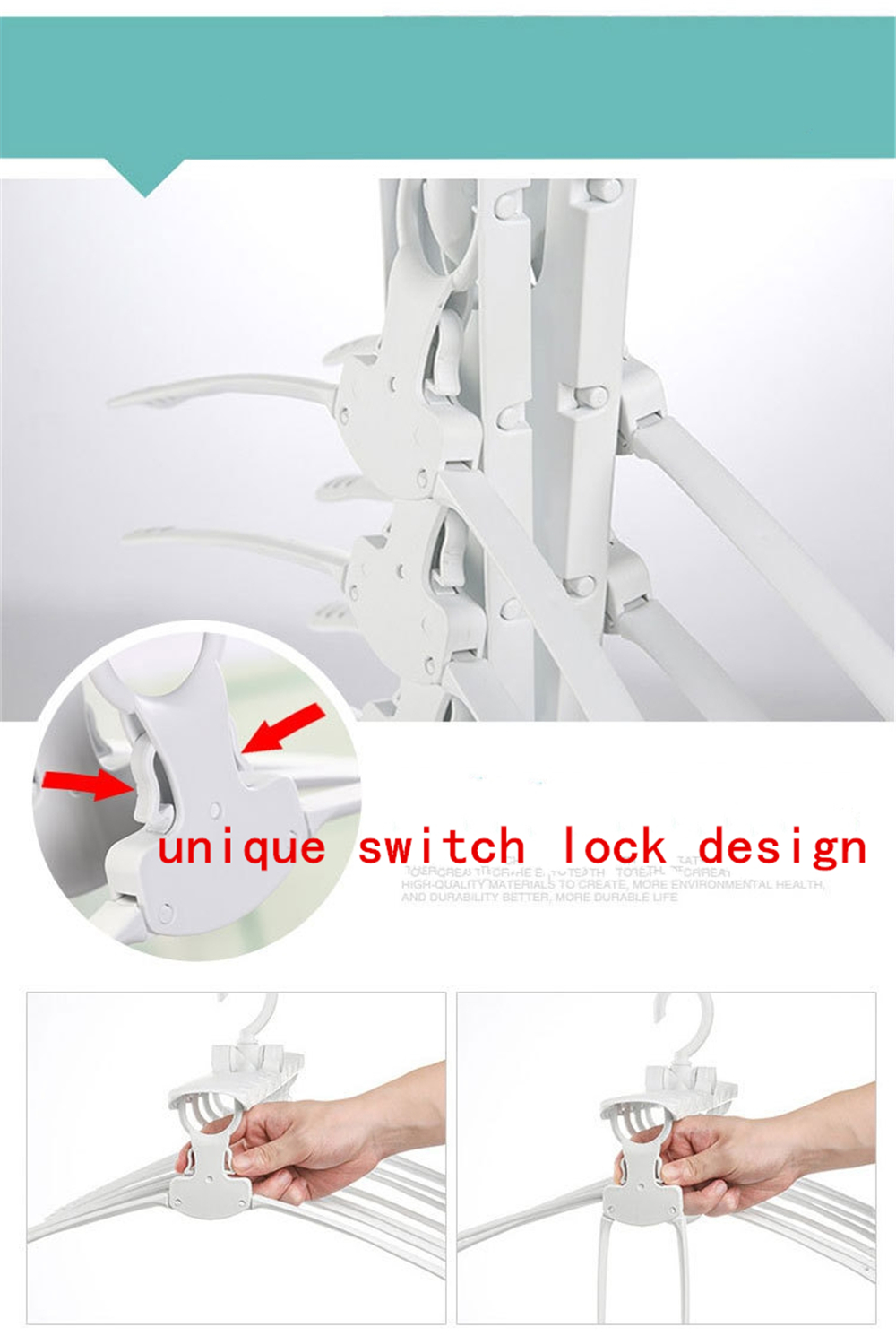 CONVENIENT FOR USAGE - With a small swith in the coat, press the swith, folding clothes hanger and reducing unusable area.