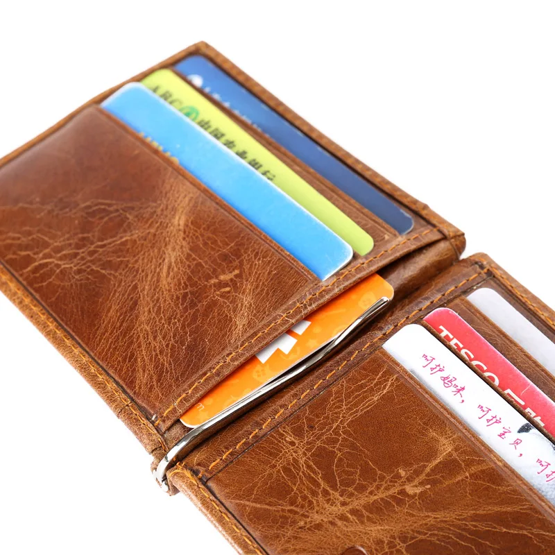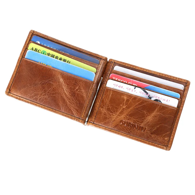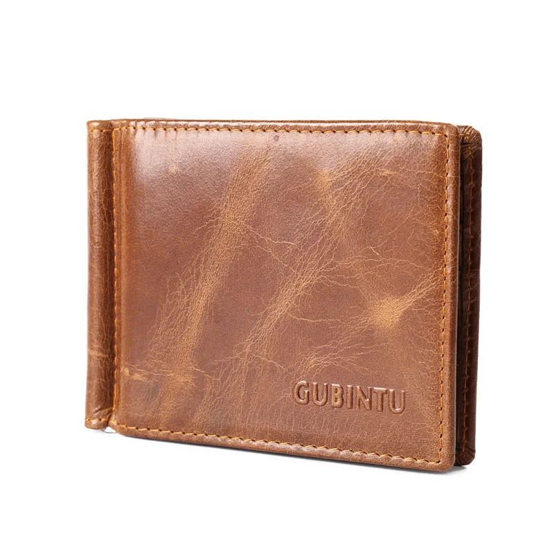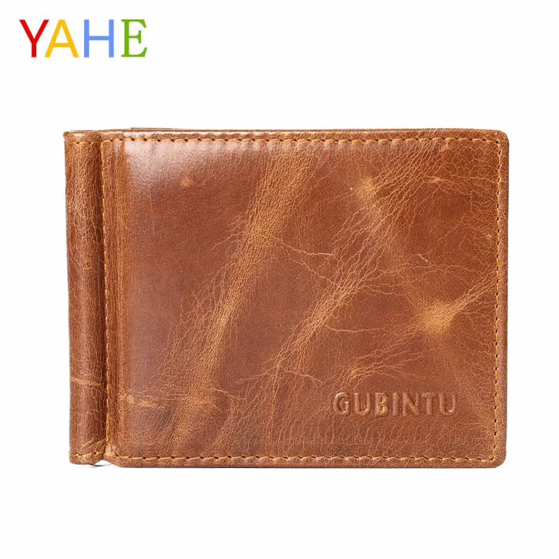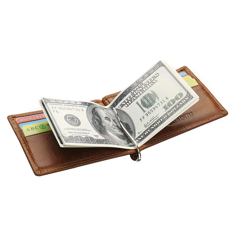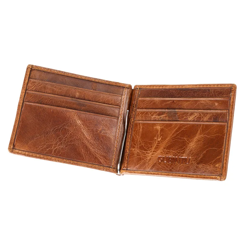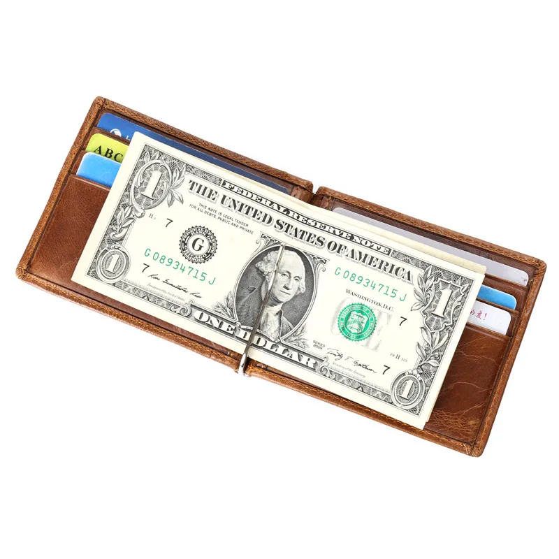 Authentic leather men's wallet:Money clip for men