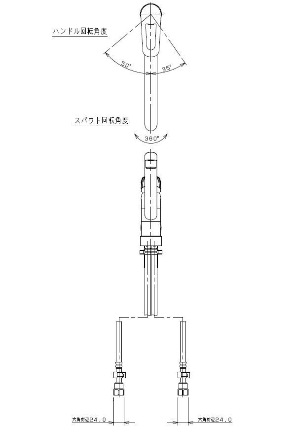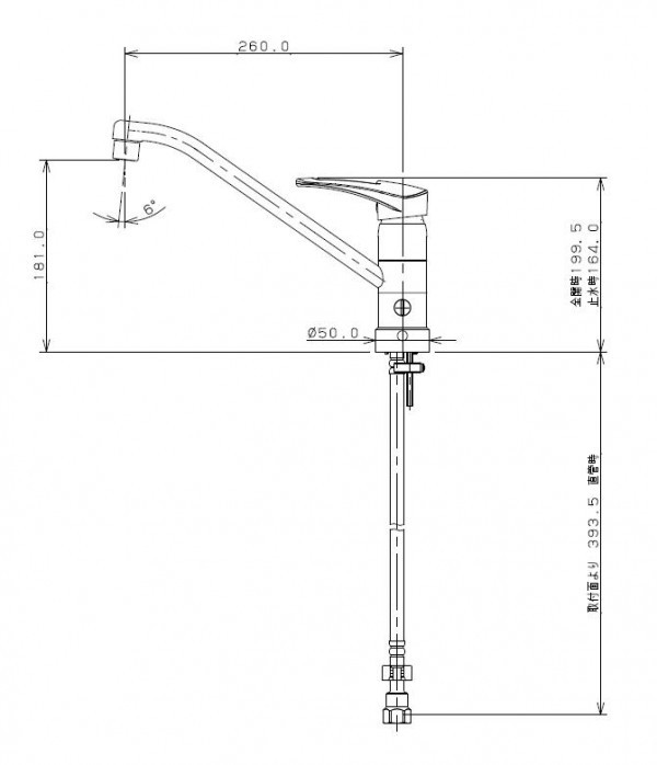 カクダイのシングルレバー混合栓です。逆流防止機能が付いています。施工が簡単にできるブレードホースを採用した商品です。