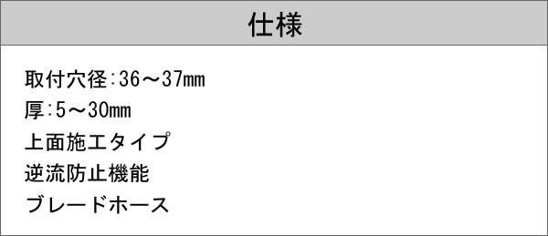 カクダイのシングルレバー混合栓です。逆流防止機能が付いています。施工が簡単にできるブレードホースを採用した商品です。 製造国:日本 素材・材質:青銅 仕様:取付穴径:36~37mm厚:5~30mm上面施工タイプ逆流防止機能ブレードホース ※サプライヤー直送品 ご注文後2~3営業日後の出荷となります