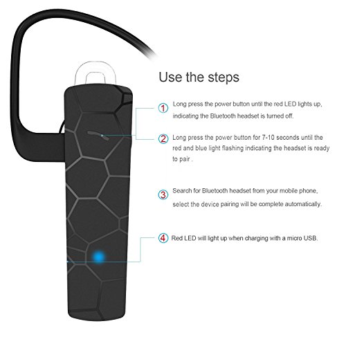 Trouble shootings steps: 1. Make sure to FULLY charge the headset for the first usage. 2. Make sure the headset is linked to ONLY one smartphone. In order to link to a second smartphone, make sure to unlink the previous one. 3. The sound leve is 3-leve preset. Press once to lower or higher the volumn. Retail Packaging includes: H781 headSet, Ear hook, Micro USB charging cable, Operating instructions