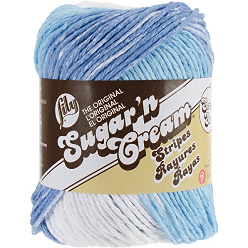 LILY-Sugar'n Cream Yarn: Super Sized Stripes. Natural soft and absorbent cotton is ideal for knitting and crocheting kitchen and bath projects. Weight Category: 4 100% cotton. 2.5oz/71g 120yd/110m. Gauge: Knit: 20st x 26r = 4in/10cm on size 7/4.5mm needles Crochet: 20st x 26r = 4in/10cm on size 7/4.5mm hook. Machine wash tumble dry do not bleach do not iron do not dry clean. Made in USA.Feature