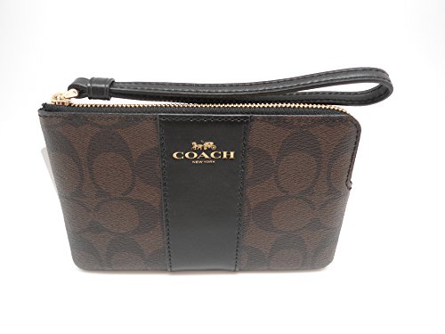 -. Title : COACH F58035 CORNER ZIP WRISTLET IN SIGNATURE COATED CANVAS WITH LEATHER STRIPE BROWN BLACK