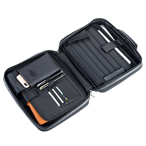 -. Title : LAX 13-Inch Laptop and Tablet Case - Protective Outer Hard-Shell Shoulder Bag Sleeve - 10 Pockets for Tablet, Smartphone, Pens, Cards - Moisture & Water Resistant - Removable Strap - Leather Handles