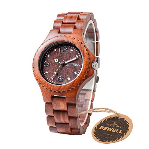 UNIQUE STYLE: Every BEWELL womens wooden watch has distinctive wood grain and a slight sandalwood smell. At less than 2 ounce, this wooden watches is so lightweight you'll forget it's there. Unique style wooden watches for women for men.