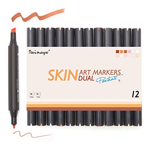 Dainayw Skin Tone Markers, Dual Tip Alcohol Marker Pens,Colorless Blender, Professional Sketching Pens For Drawing, Face, Portrait, Illustration Manga Drawing Comic Books, 12-Pack