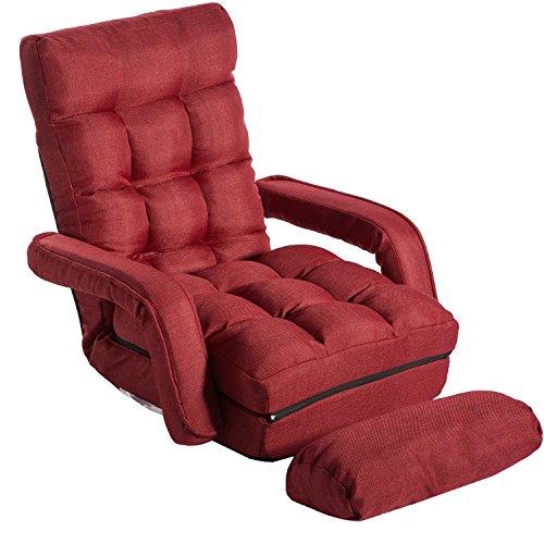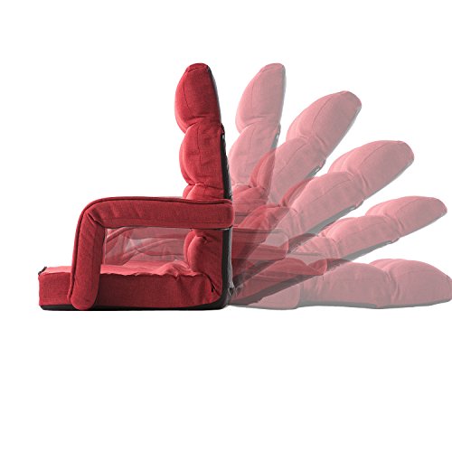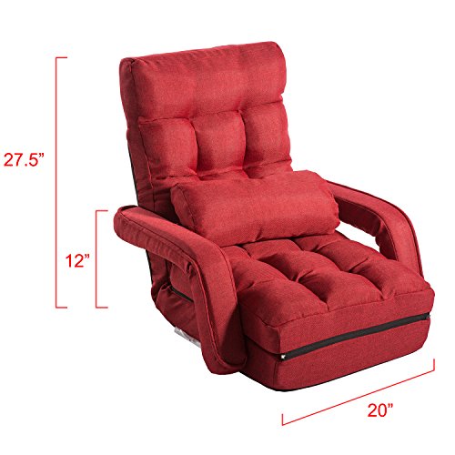 Merax Folding Lazy Sofa Floor Chair Sofa Lounger Bed with Armrests and a Pillow (Red)