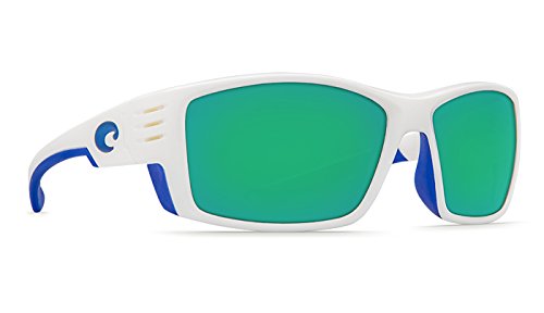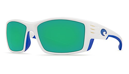 Costa Cortez Sunglasses White w/Blue Logo / Green Mirror 580G