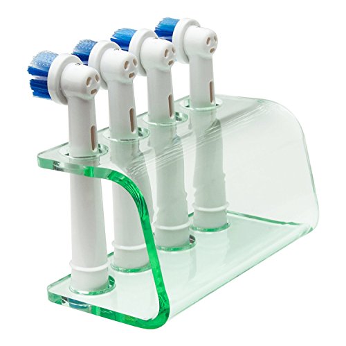 Electric Toothbrush Head Holder by Seemii. Head Stand Holds 1, 2, 3 or 4 Electric Toothbrush Heads, Clear Green Acrylic 4 Head Holder, Fits Oral-B Heads, Great Bathroom Accessory, Good Dental Hygiene