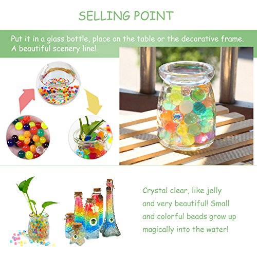 VALUE PACKAGING: Huge 8 oz. value pack of high quality colorful crystal water beads. Colorful like rainbow with 6 colors mixed, over 50000 water beads in total.