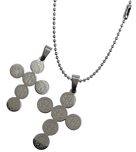 -. Feature : MEN Set Solid High Polish San Benito - San Benedict Cross + Ball Chain - Length Choice 24, 26, 28 Inches / One Gorgeous Stainless Steel Cross - Two Sides Engraved High Polish / Height = 2 Inch (5cm) , Wide= 1.2 Inches (3CM) / Available chain Lengths: 20Inches (50cm), 24 Inches(60Cm), 26Inches (70Cm), 28 Inches (80Cm) / Bright Logo Plastic Bag - US Company - Fast and Free Shipping