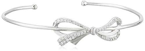 -. Title : Sterling Silver Cubic Zirconia Bow Cuff Bracelet