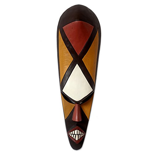 NOVICA Decorative Ghanaian Large Wood Mask, Multicolor 'King Of The Akan People'