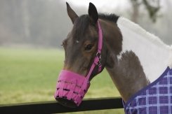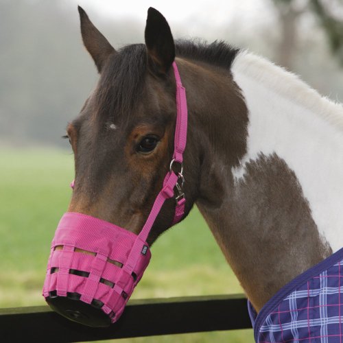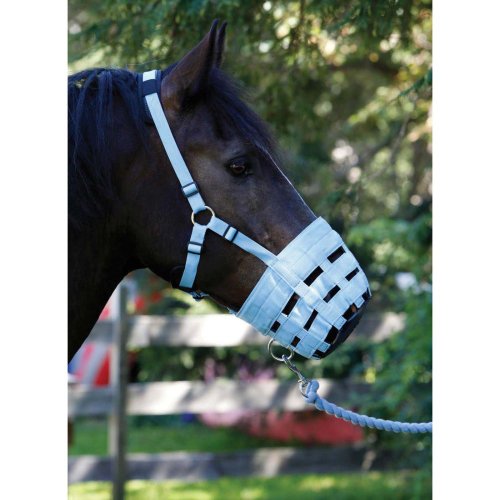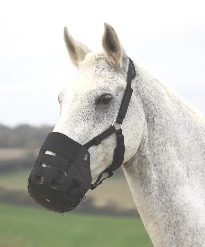 Studio : SHIRES EQUESTRIAN LLC Publisher : SHIRES EQUESTRIAN LLC Binding : Misc. Product Description Shires Nylon Grass Muzzle This nylon grazing muzzle will help limit the amount of grass your horse can eat thus curbing overeating. It features a strong rubber base, with tough nylon web bars on the side and a headpiece and throatlatch to keep the muzzle securely in place. Features: Helps curb overeating Quality nylon and rubber construction Headpiece and throatlatch for secure placement Specifications: Circumference Cob Size Bottom - 21" Top - 23.5" Full Size Bottom - 22" Top - 27" 0